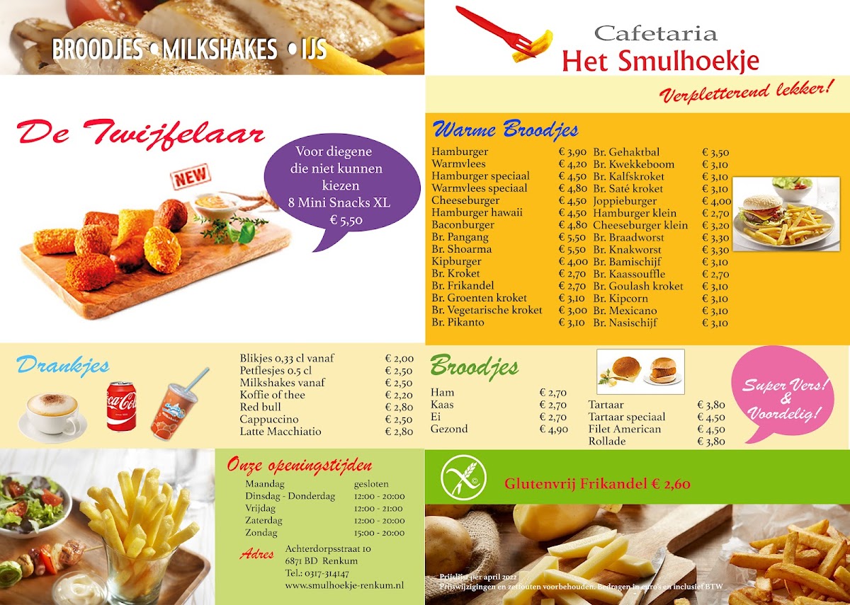 Welcome to Cafetaria 't Smulhoekje, a beloved fast food spot nestled in Renkum, Netherlands. This charming cafeteria offers a delightful variety of dishes that cater to every craving. Patrons rave about the crispy fries and mouthwatering, homemade nasi schijf, which showcases the establishment’s commitment to quality. Customers frequently praise the friendly service, ensuring a warm atmosphere for dining in or taking away.